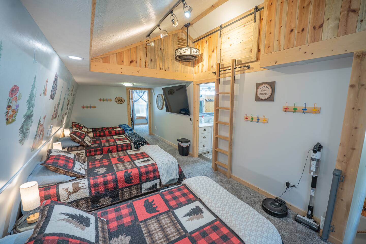 Kick back in this cozy cabin on a private, gated island in Island Park! Soak up forest views, spot some wildlife, and end your day around the fire pit—firewood included. Inside, the kids will love their own playroom with toys, games, and a Wii, while everyone can enjoy TVs in every bedroom and lightning-fast fiber Wi-Fi. With a washer/dryer, ironing board, and all the comforts of home, it’s the perfect base for your next family adventure!